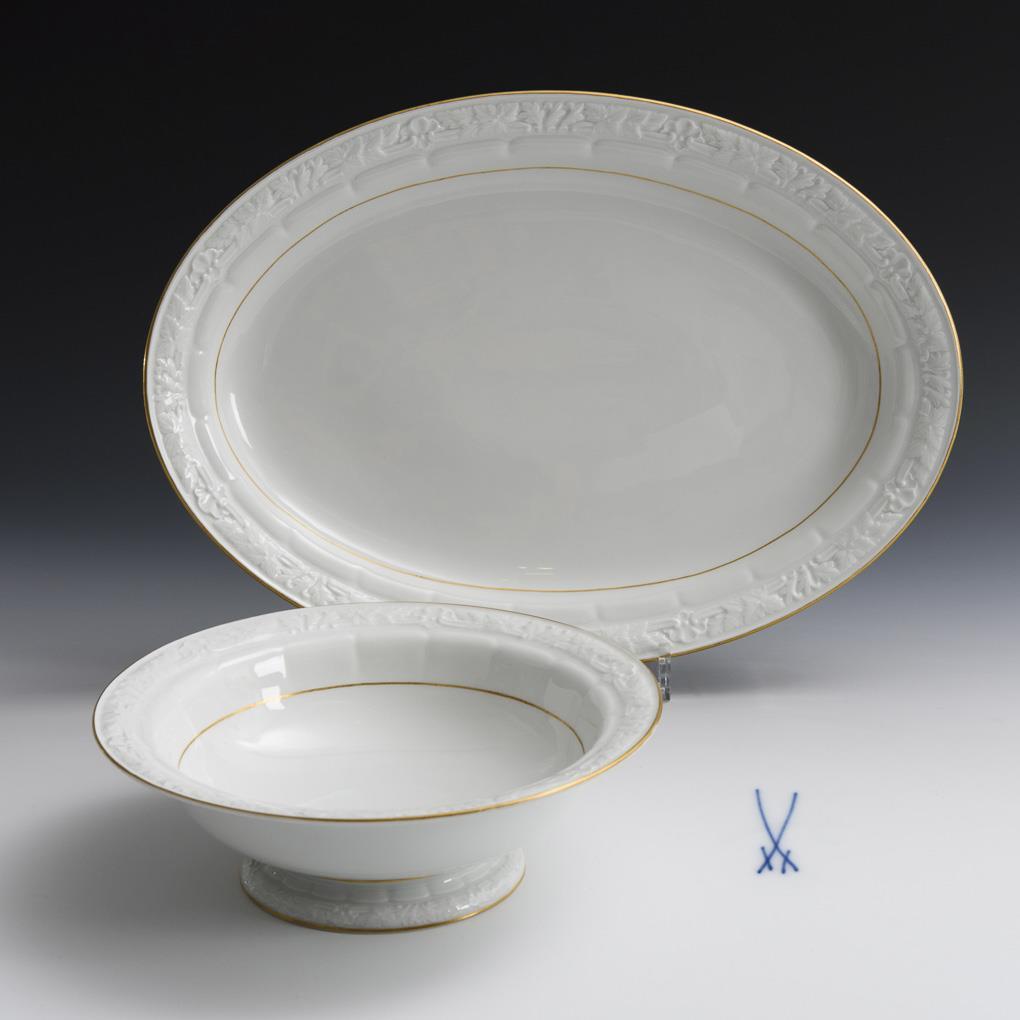 White with gold staffage. Oval plate (L 43,5 cm) and bowl (Ø 26,5 cm).