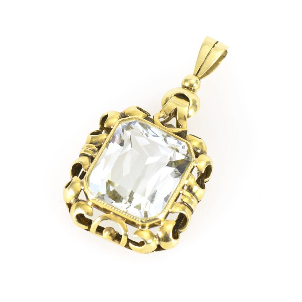 Yellow gold 585 stamped. 2.5 x 1.9 cm. Stone approx. 9.30 ct. 4.7 g.