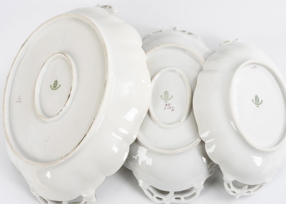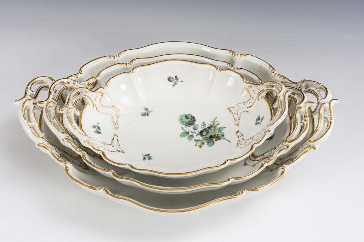 3 bowls with green floral painting. Nymphenburg.
