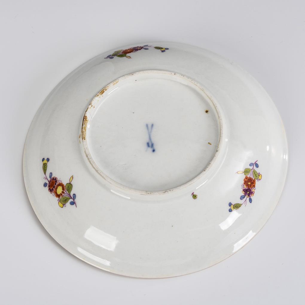 Polychrome painted, gold decorated. Ø 17 cm.