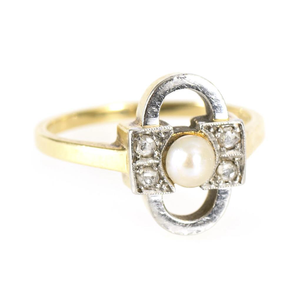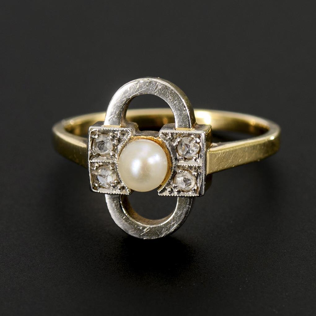 Art deco ring with pearl and old cut diamonds, circa 1920.