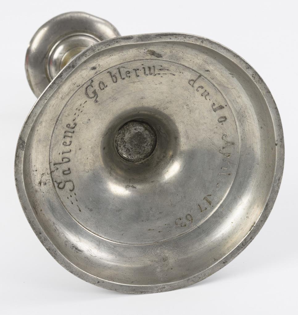 You are here:   Home Categories Metalworks Taufschale mit datierter Widmung "Brambach 1719 und" barocker Leuchter