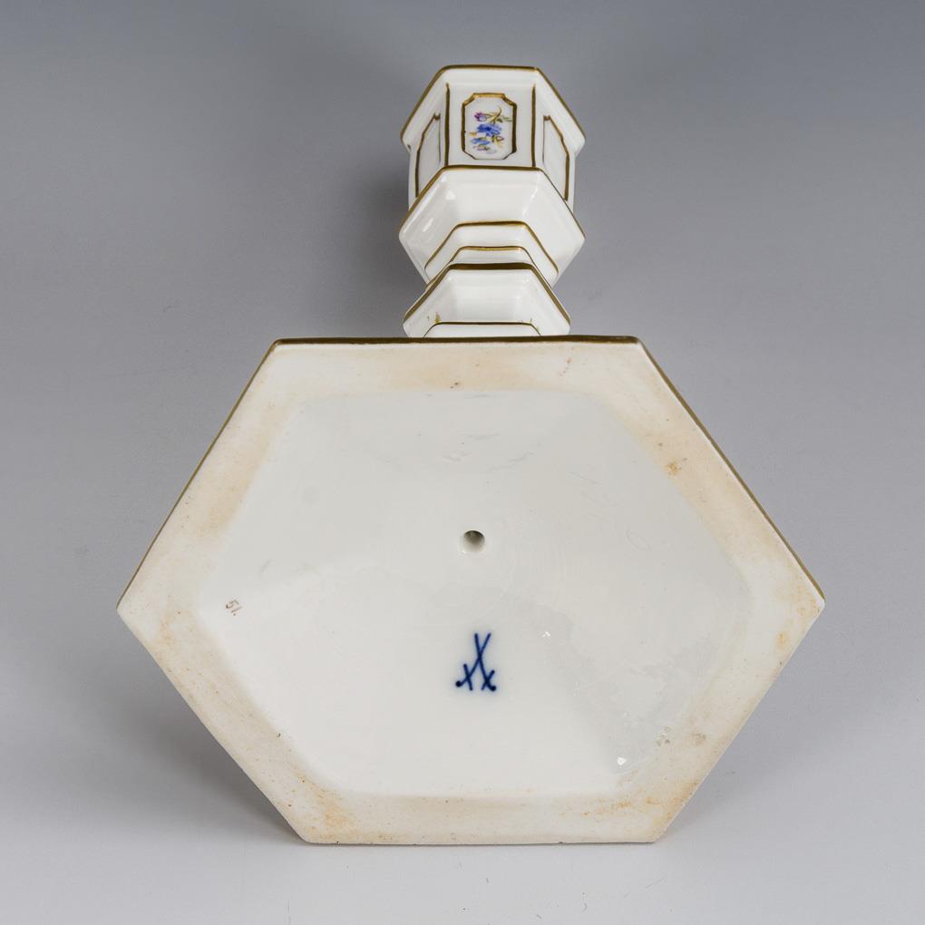 Octagonal candlestick with multiple jointed shaft.