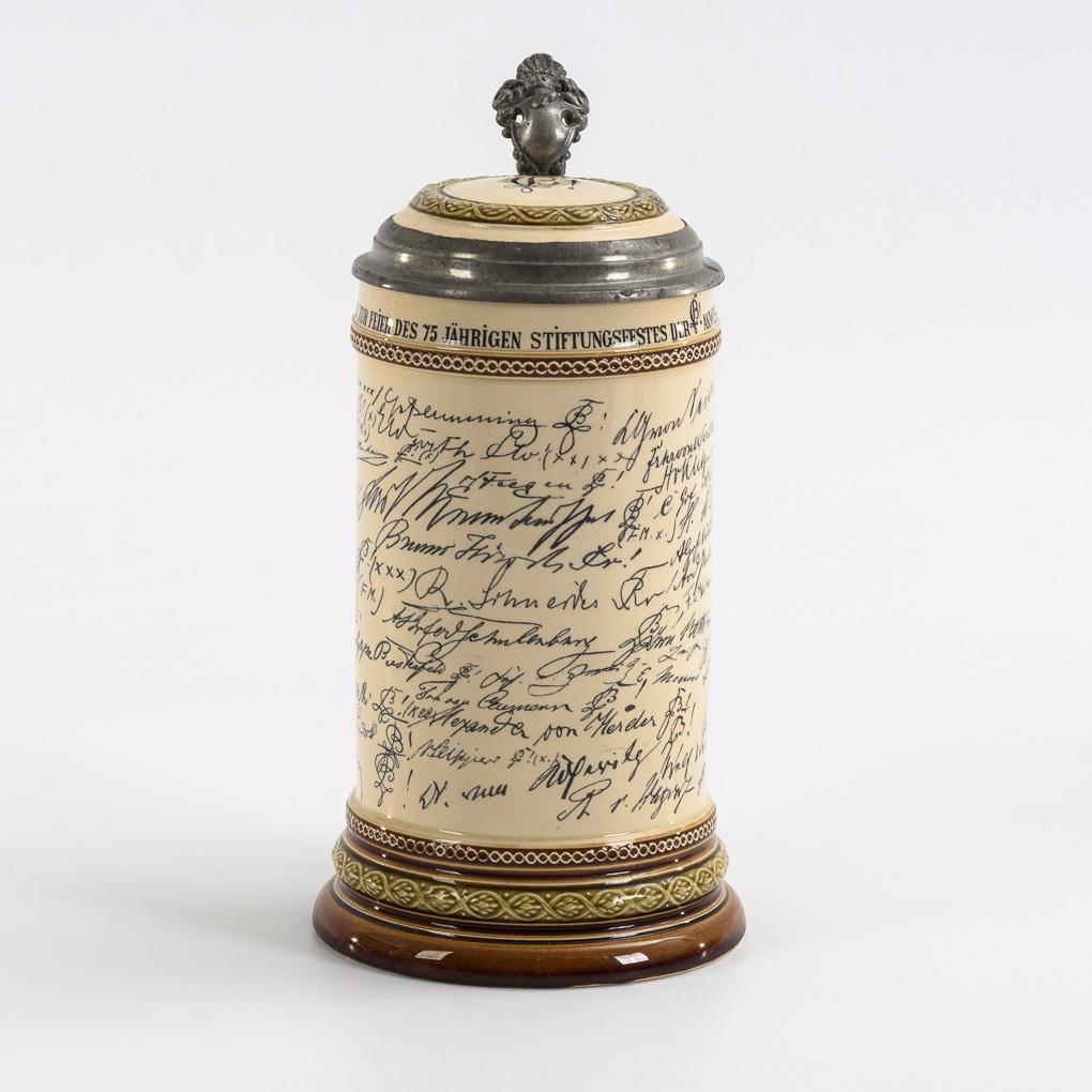 You are here:   Home Categories Miscellaneous Seltener studentischer Mettlachkrug mit Adelsunterschriften des Stiftungsfestes der Saxoborussia Heidelberg