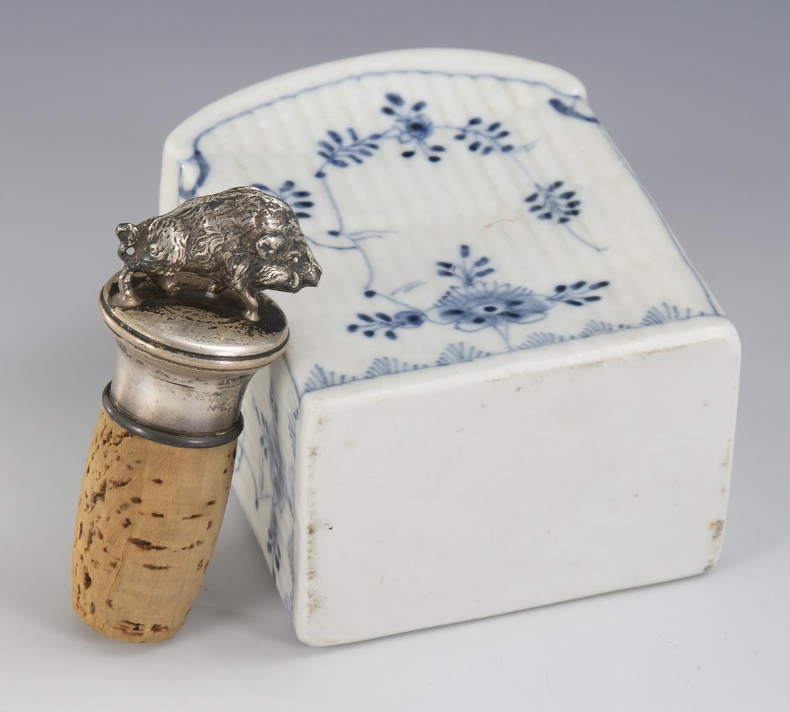 Rectangular box with broken ribbed walls and silver lid with the figure of a wild boar (925/crescent/crown/master mark hallmarked).