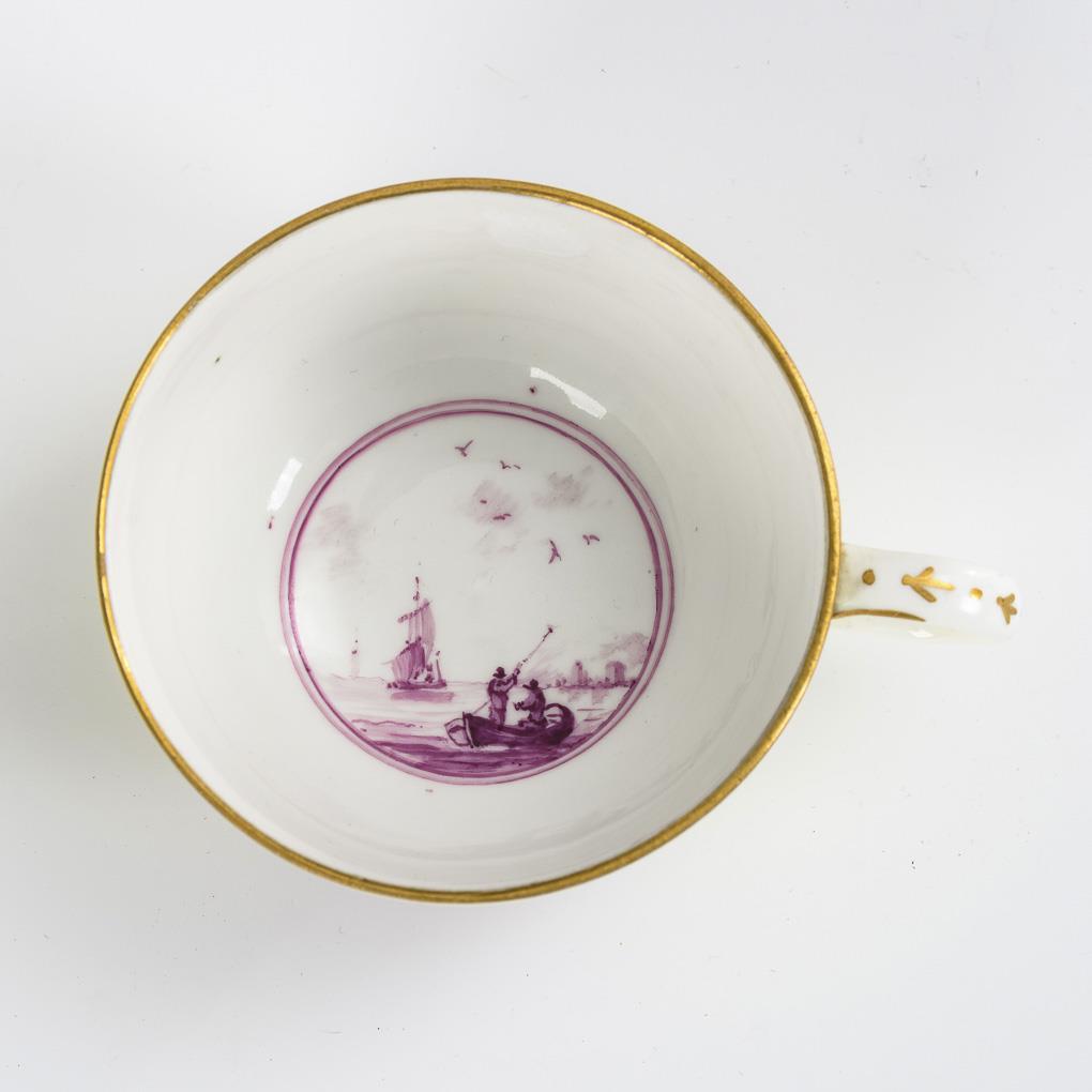 Purple painting, gold staffage. H cup 5 cm, Ø saucer 13 cm.