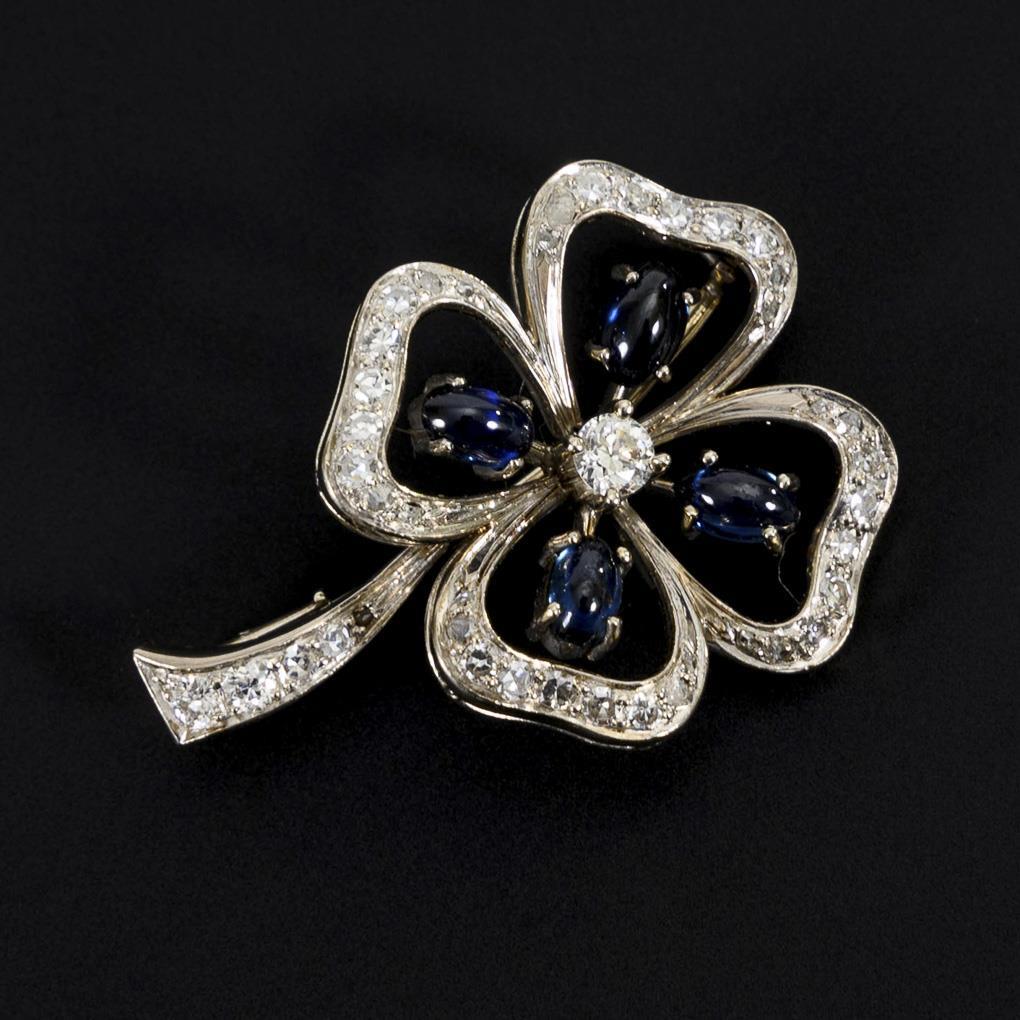 Clover brooch with sapphires and diamonds.