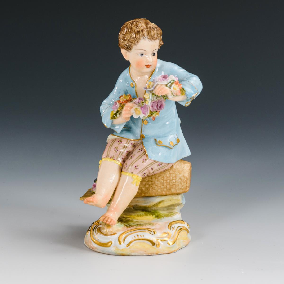 Beide Fußspitzen, linke Hand und Teil der Kiepe restauriert, partiell Blüten bestoßen.