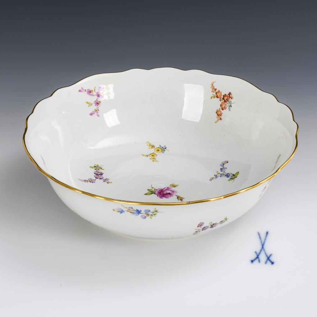 Polychrome painted, gold decorated. Ø 27,5 cm.