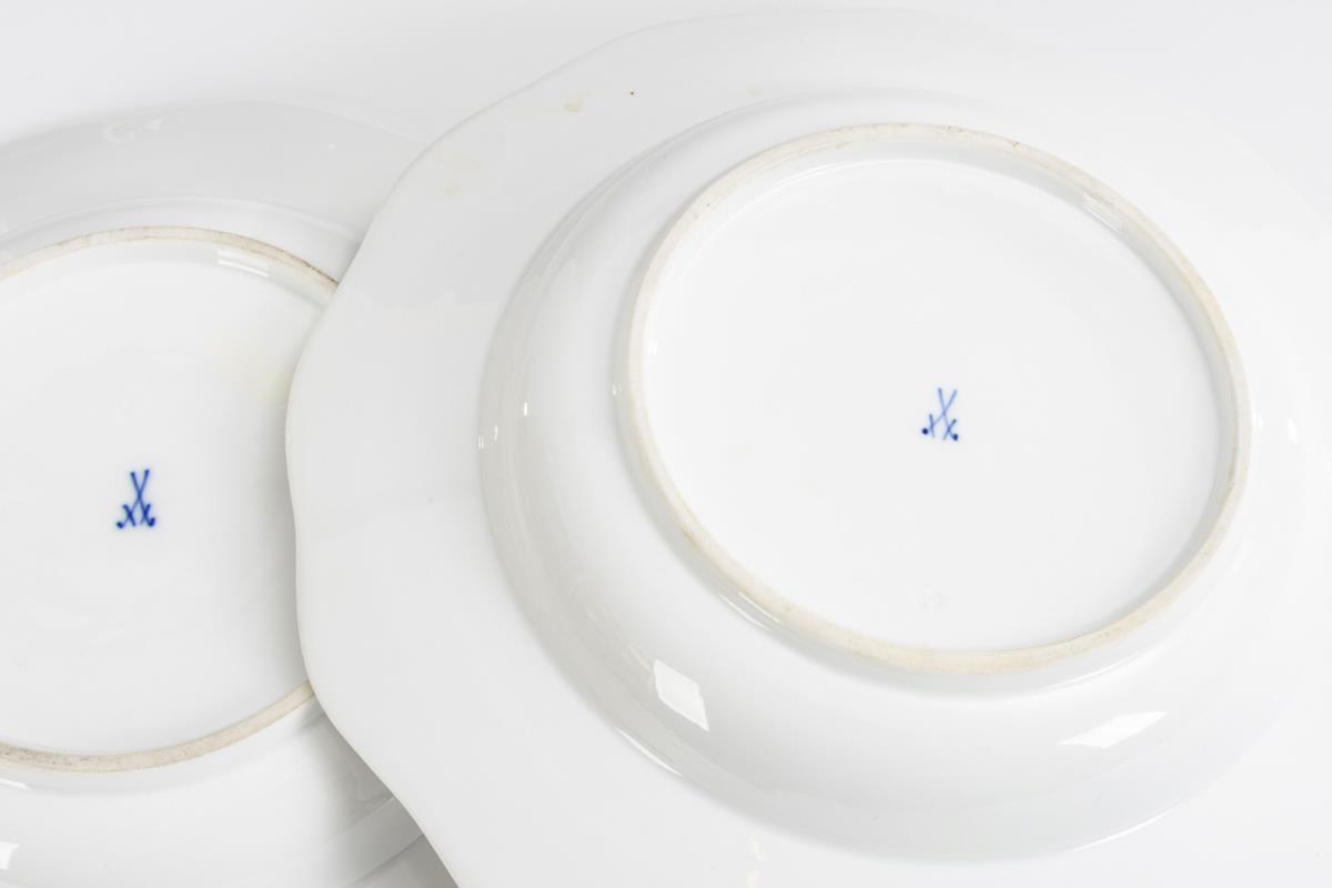 Soup plate with multi-pass rim and purple Indian floral painting.