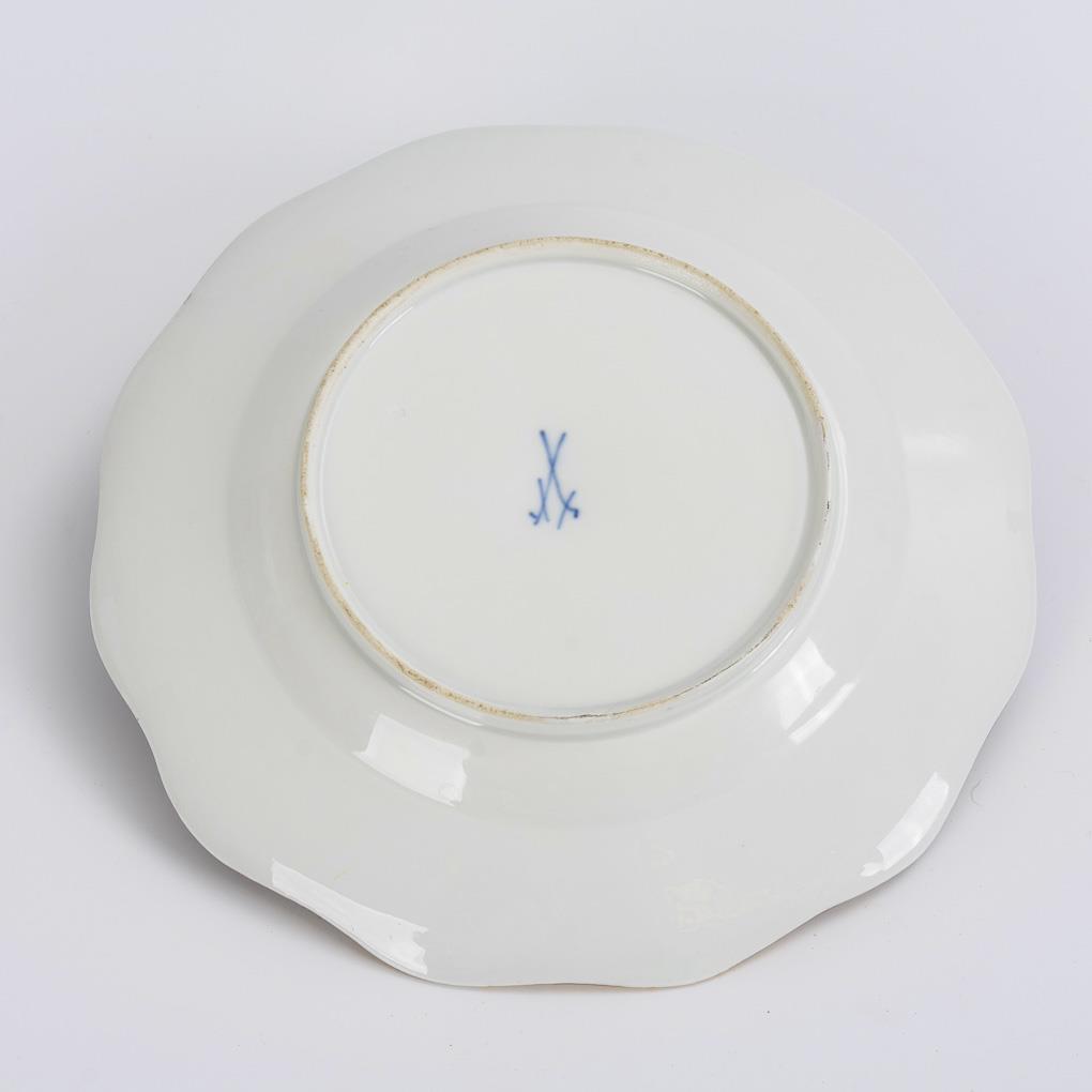 Polychrome painted, gold decorated. Ø 22 cm.