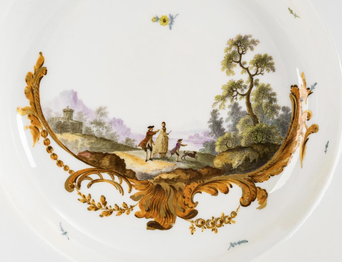 Baroque soup plate with landscape painting. Meissen.