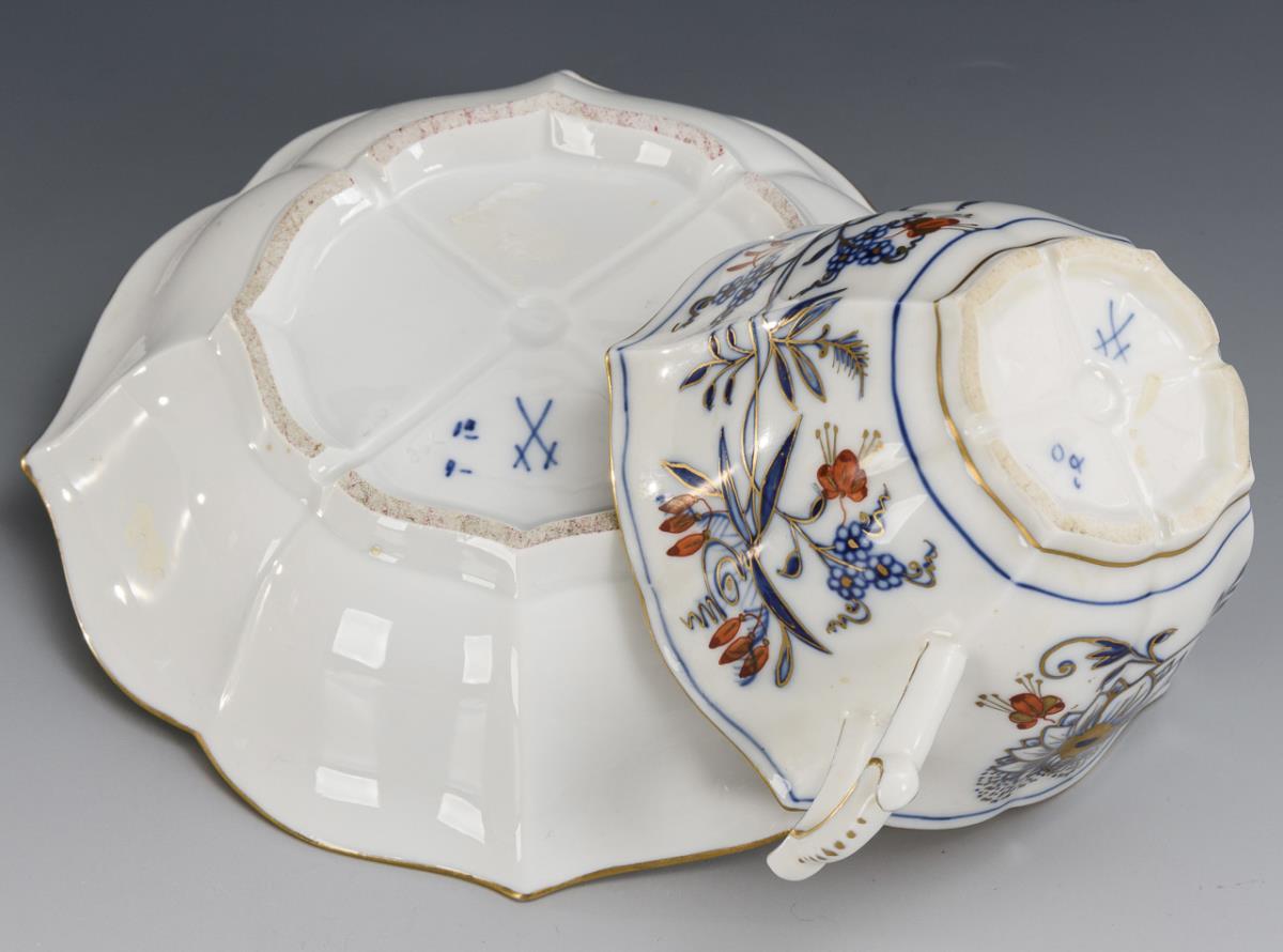 Underglaze blue, red and gold heightened painting. H cup 6,5 cm, Ø original saucer 17 cm.