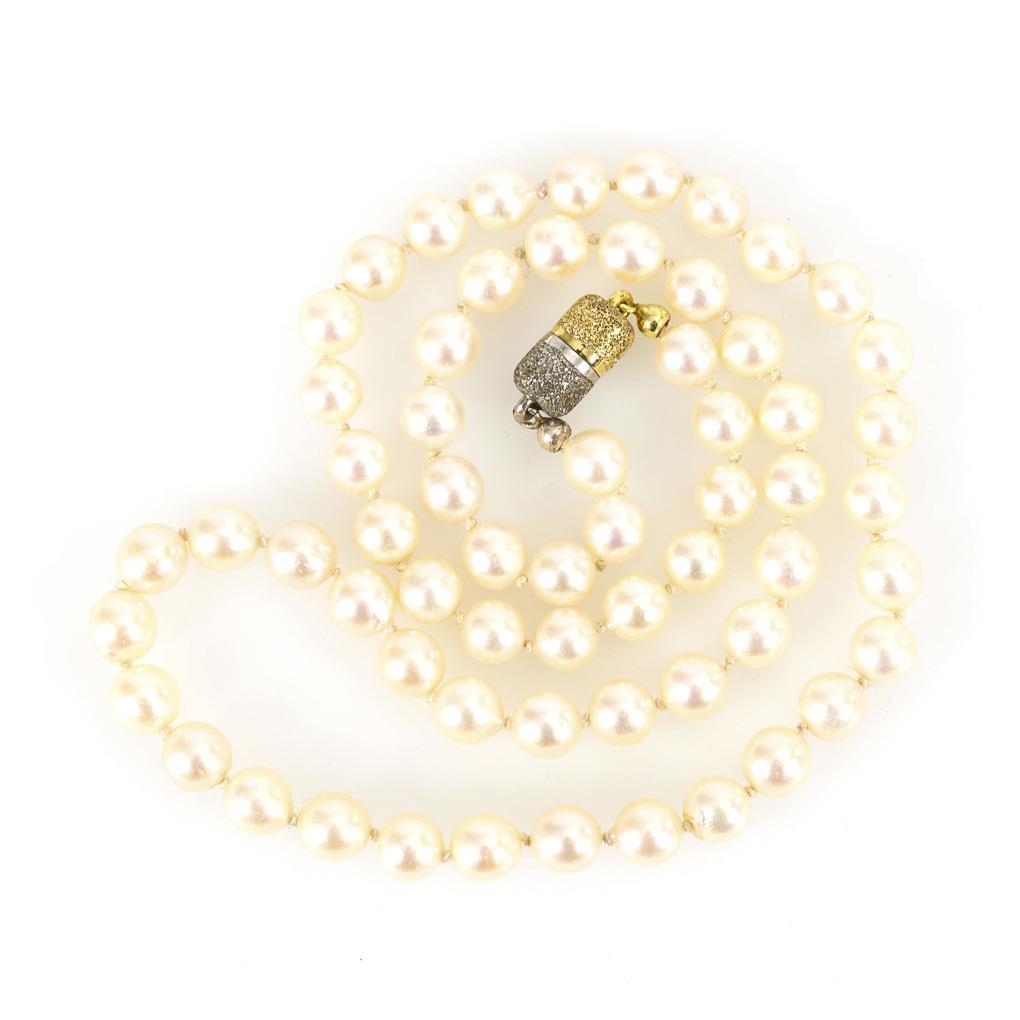 Short cultured pearl necklace.