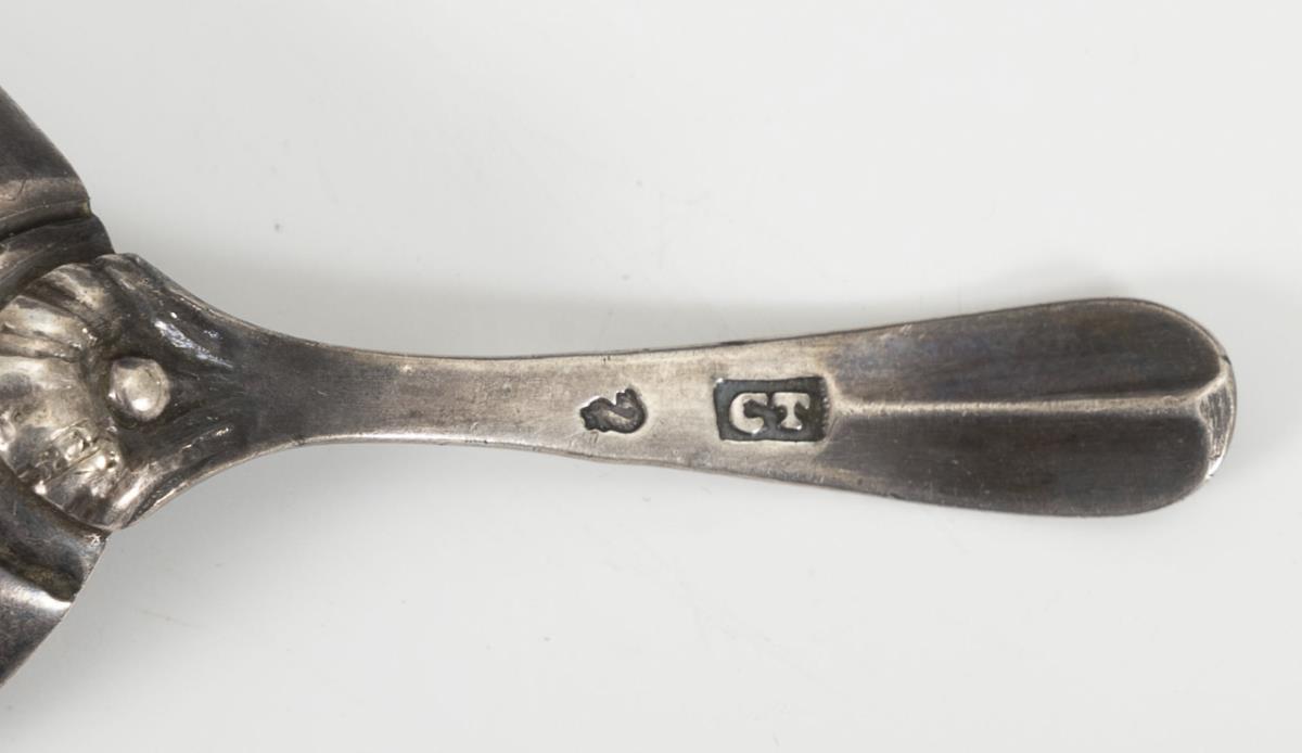 Biedermeier paperweight Vienna, 2 napkin rings, 3 old sugar spoons with shell-shaped spoon and small stringed instrument with silver filigree. Age traces and defects.