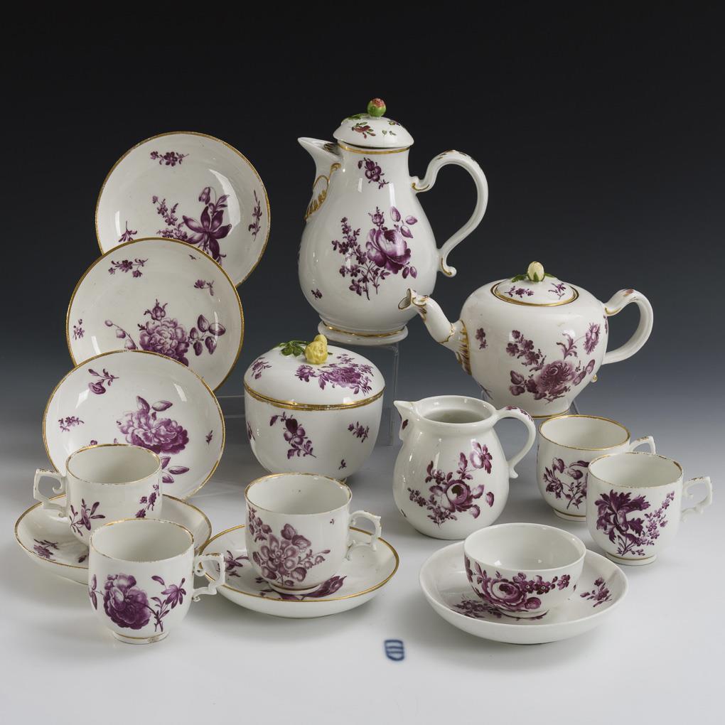 Baroque coffee and tea service with purple painting. Vienna.