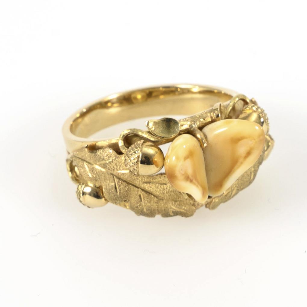 Yellow gold 585 stamped. Goldsmith work. Ring size 75.5.