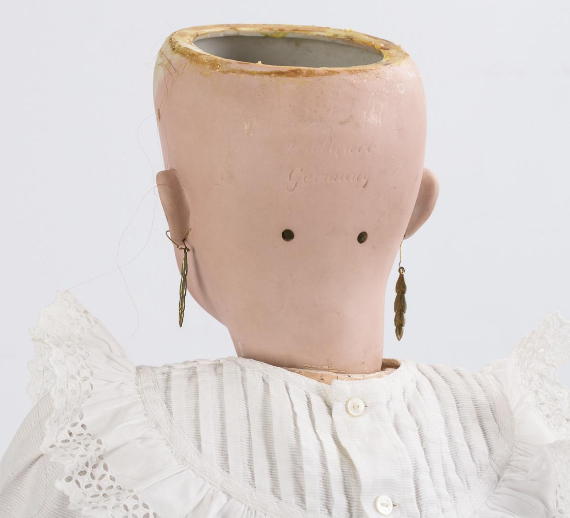 Large porcelain head girl with white dress. Kley & Hahn.
