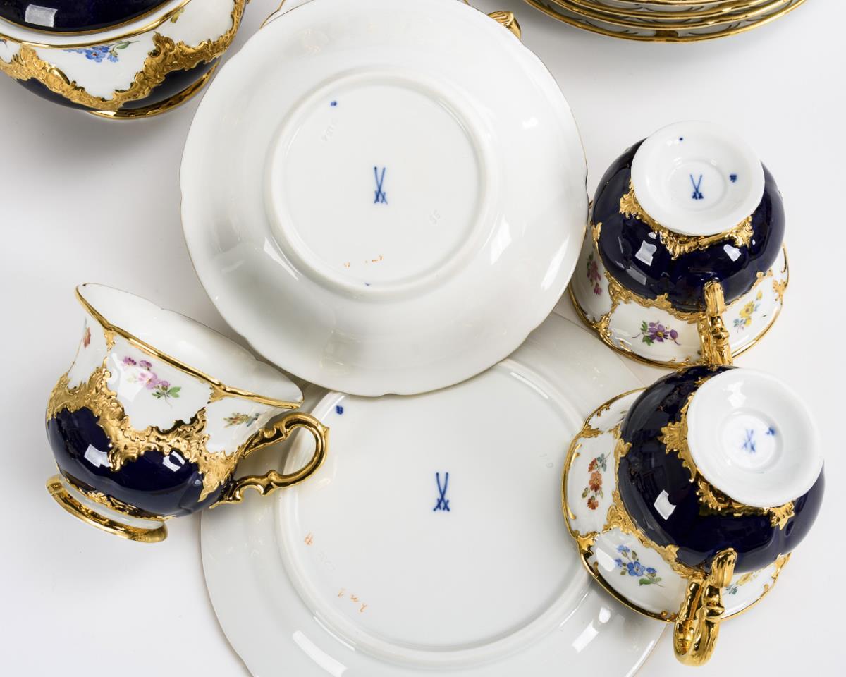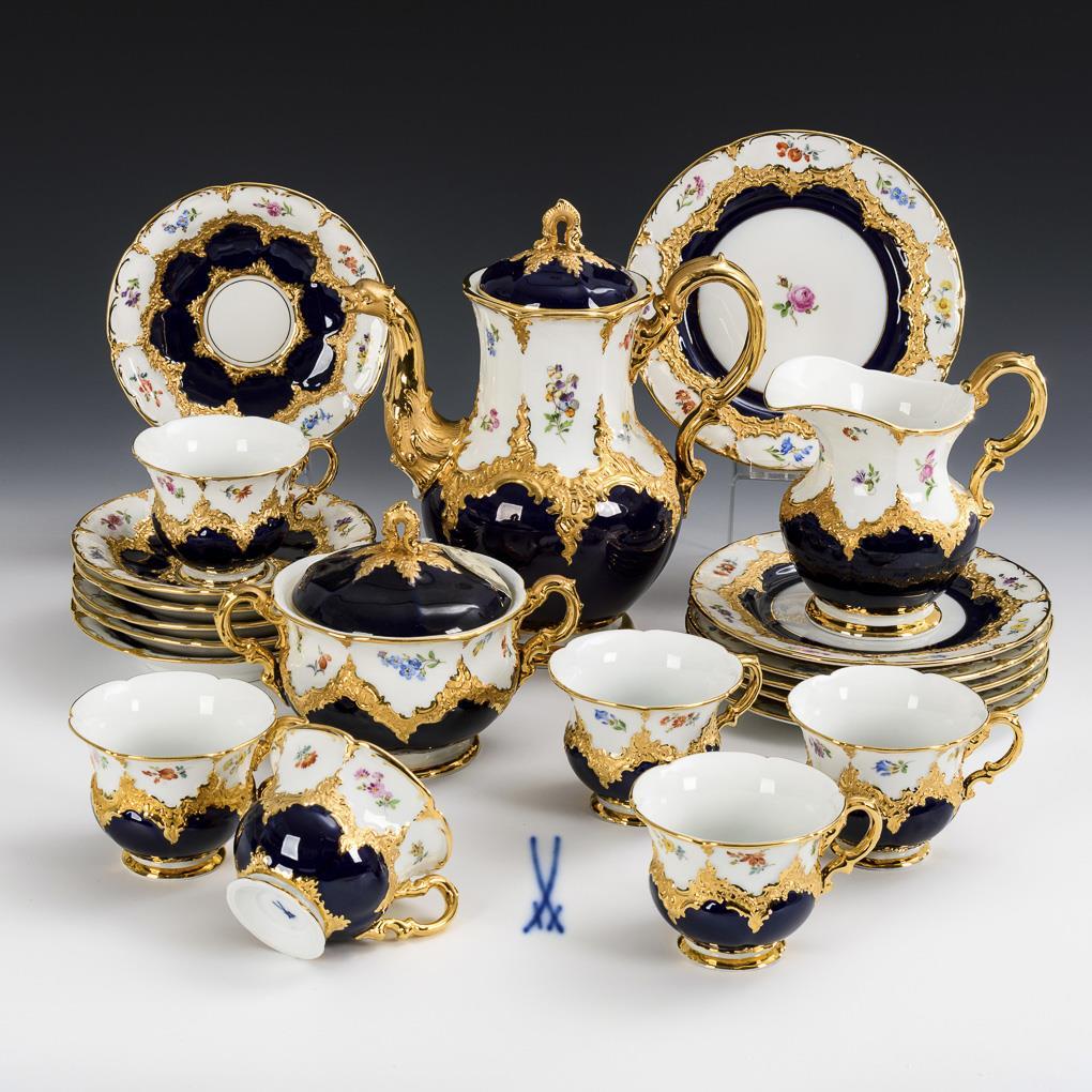 Coffee service with cobalt background "B-form". Meissen.
