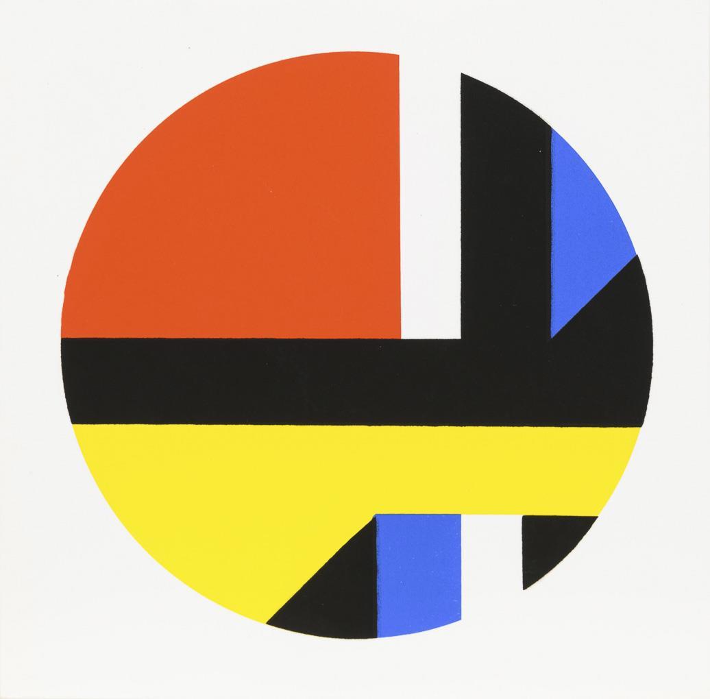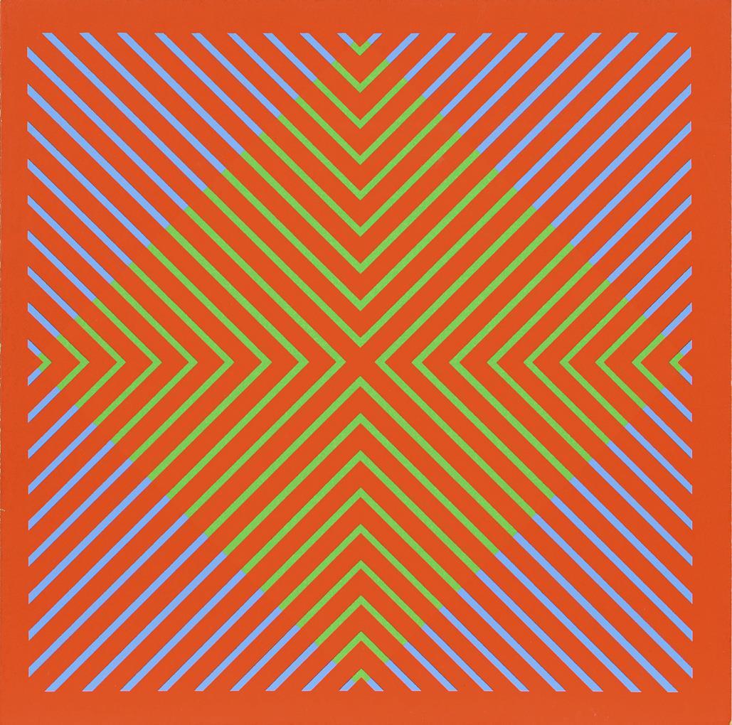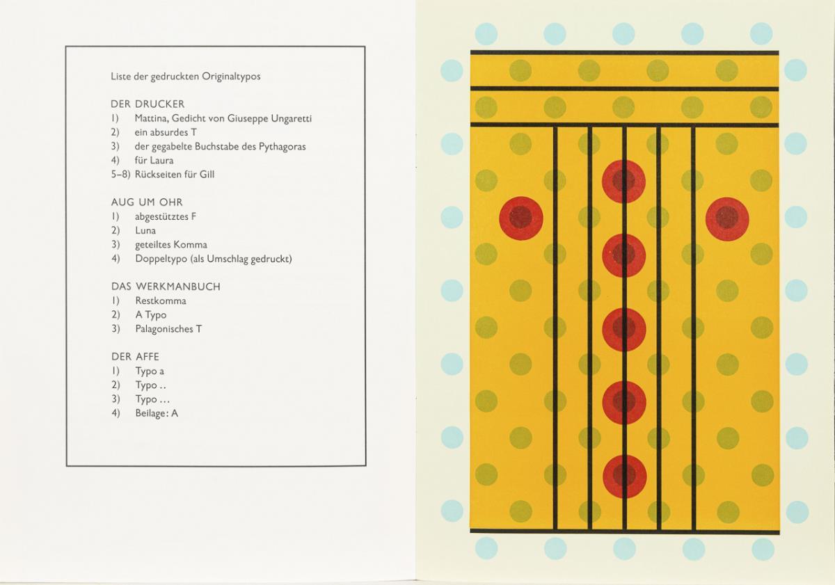 7 folding cards, color silkscreens: Allan D'Arcangelo, 1968, 17,7 x 17,7 cm; 2x Richard Anuszkiewicz, each 17,7 x 17,7 cm; 2x without inscription, each 14 x 14 cm and 2x Matthew Leibowitz: "Geoma", 1971, each 14 x 14 cm | Invitation to the exhibition "Hypothesis Experiment Invention" from 1.6.1996 to 1.9.1996 at Galerie Hoffmann, Friedberg, with foil for the creation of kinetic images and original envelope made of parchment paper, 21.5 x 21.5 cm, minimal traces of use | Booklet: "From the treasure house of Atreus Eia Pompeia", 1991, 1 of 2300 copies, 800 of which with multicolored original envelope, Galerie im Unteren Tor, Bietigheim, 29.5 x 21 cm.