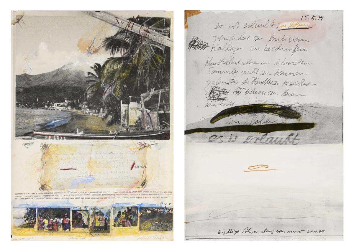 "It is allowed", 1979, sheet: 61 x 42 cm, sample 4/10, pencil signature, verso stained, verso stamp "I can't speak the Cologne dialect" | "Redudu Perletin", 1978, sheet: 86 x 60.6 cm, copy: 1 of 100, verso stained, sheet creased.