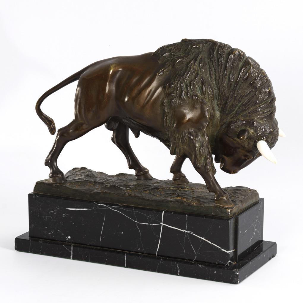 Bronze 2-color patinated, galalith, black marble base. H 25 cm, total 34 x 40 x 16 cm. 19,6 kg.