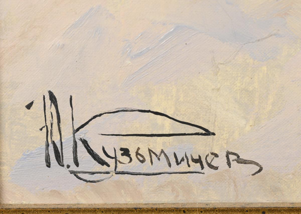 Oil / canvas / cardboard. Signed in Cyrillic lower left, inscribed/titled in Cyrillic on verso. 20th c.
