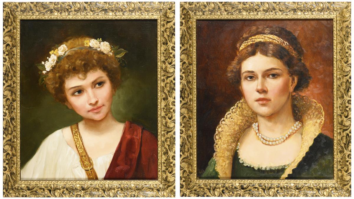 Russian artist: Portrait pendants of two women