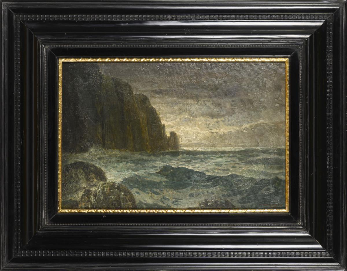 Oil/painted cardboard. Signed lower right with addition Munich, titled on verso. Circa 1880.