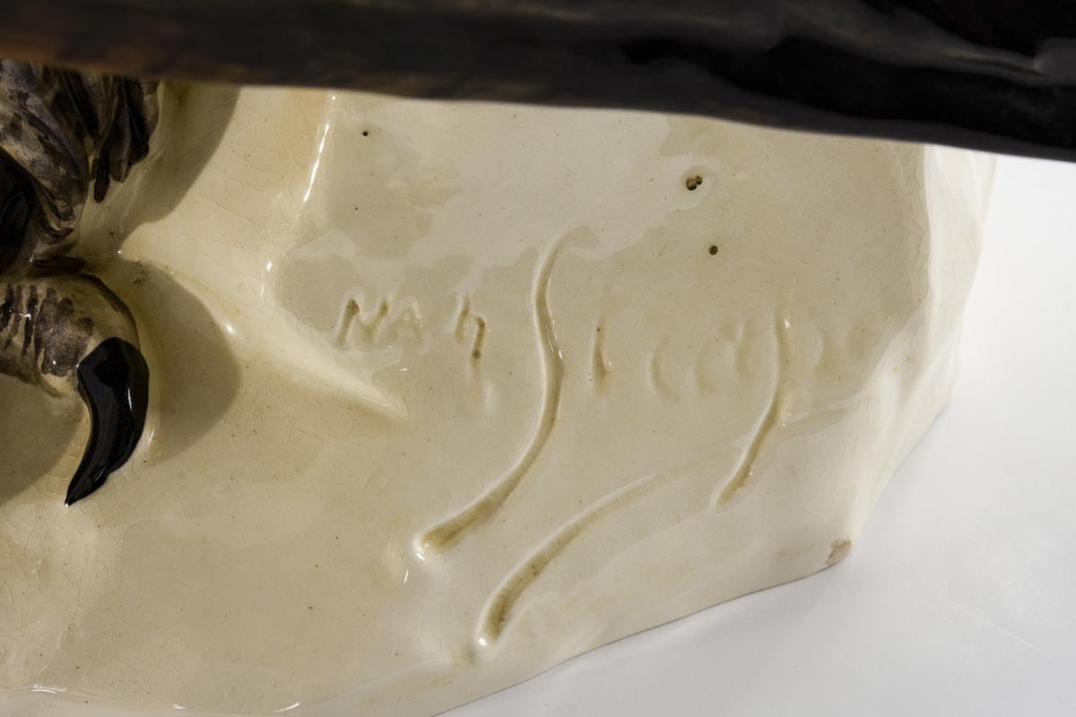 Stoneware, colored staffiert. H 36,5 cm. 5.9 kg.