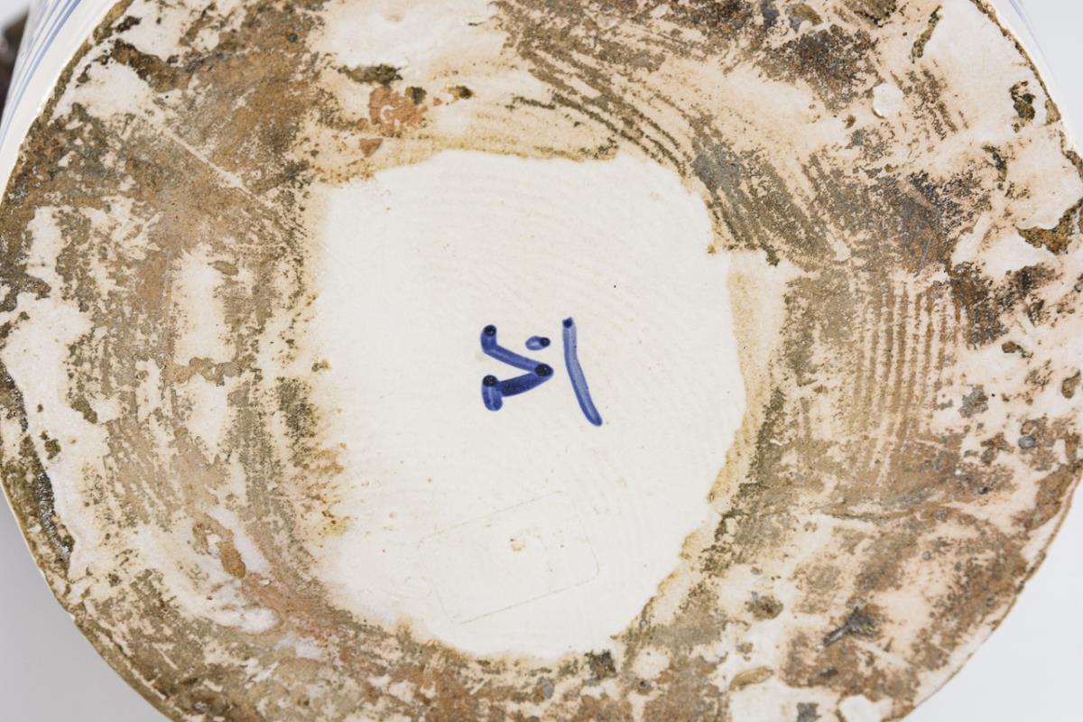 Large Thuringian faience roller jug with pilaster decoration. Erfurt.