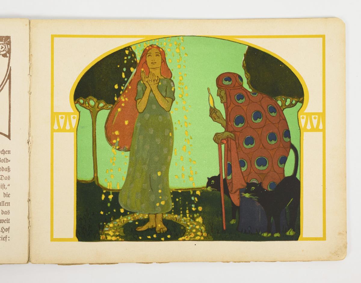 Series A: Fairy Tales, No.7, 16 pages with full-page color lithographs, half cloth binding in original dust jacket. Faint signs of age.