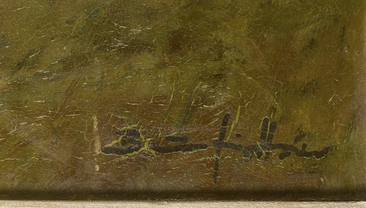 Oil / cardboard. Signed lower right, verso inscribed / titled.