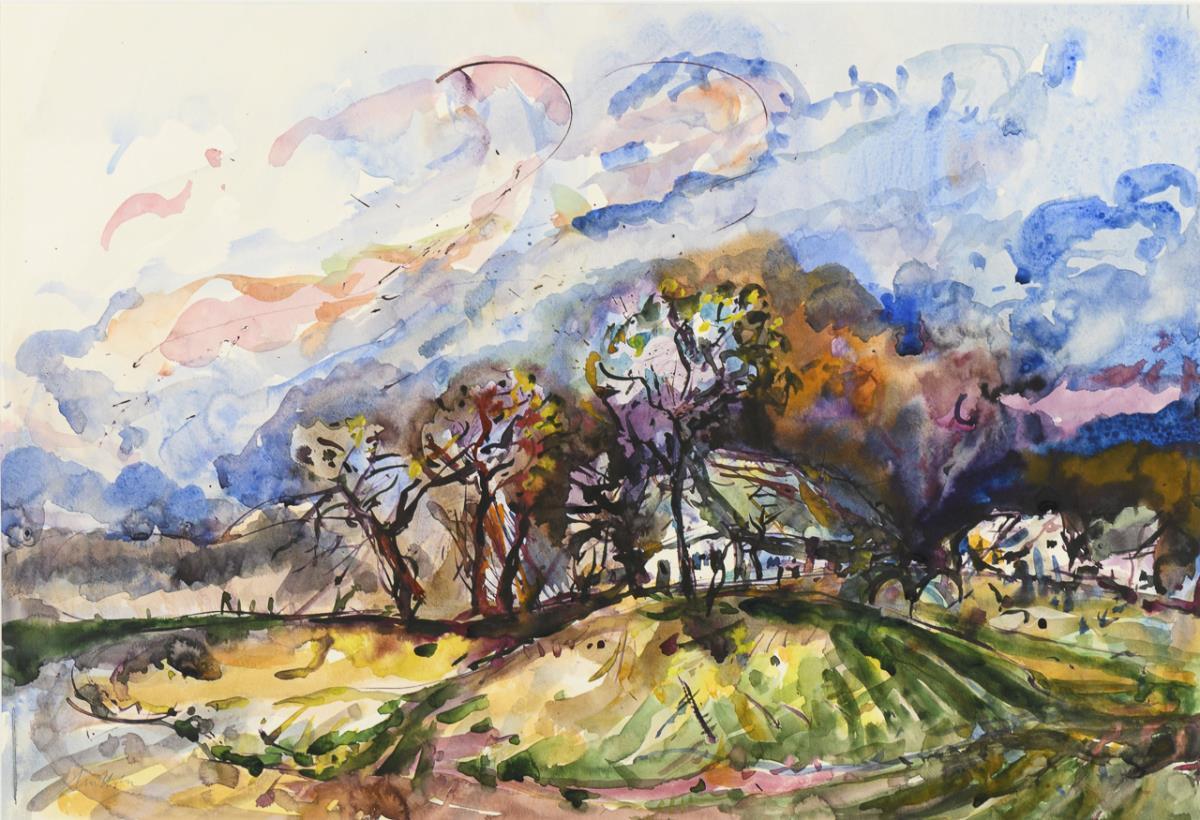 Aquarell. Signed lower left, verso artist's stamp and "Rü-017".
