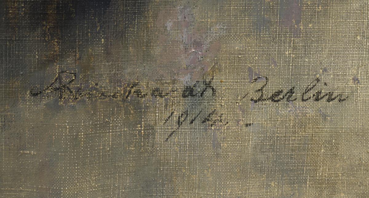 Oil/canvas. Signed lower right with addition Berlin, verso titled as well as inscribed on estate stamp. 1914.
