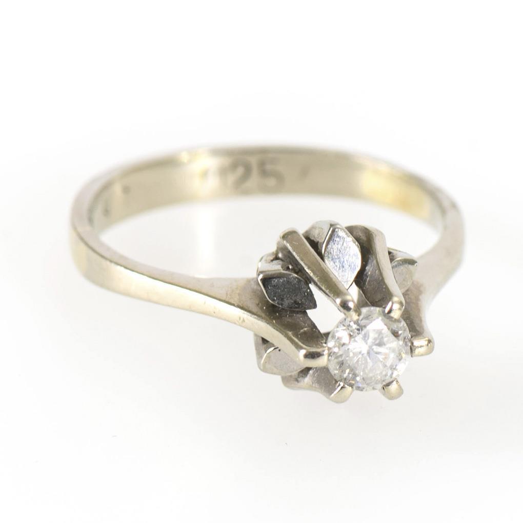 White gold 585 tested. Indistinctly stamped. Ring size 52. diamond 0.25 ct/W/PI. 3,1 g.