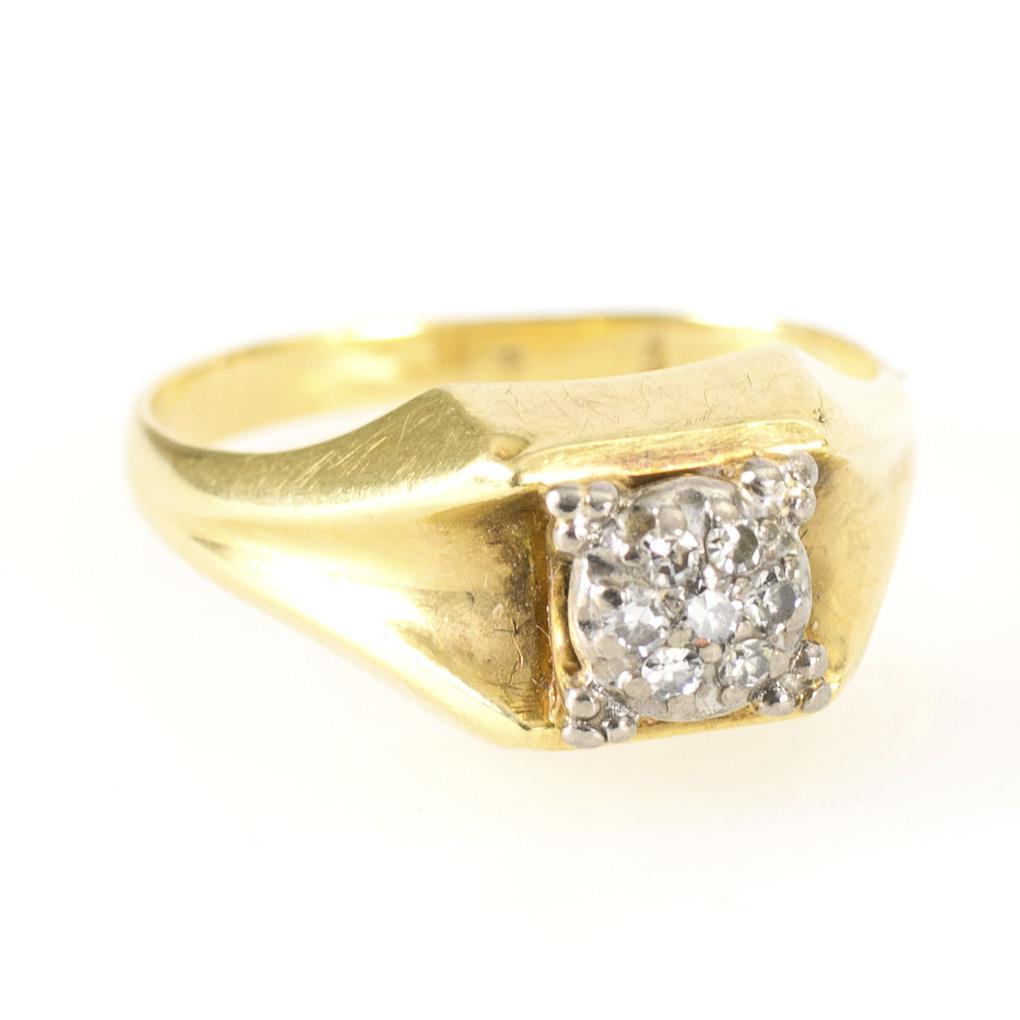 Tested yellow gold 585. Indistinctly stamped. Ring size 60. 3.3 g.