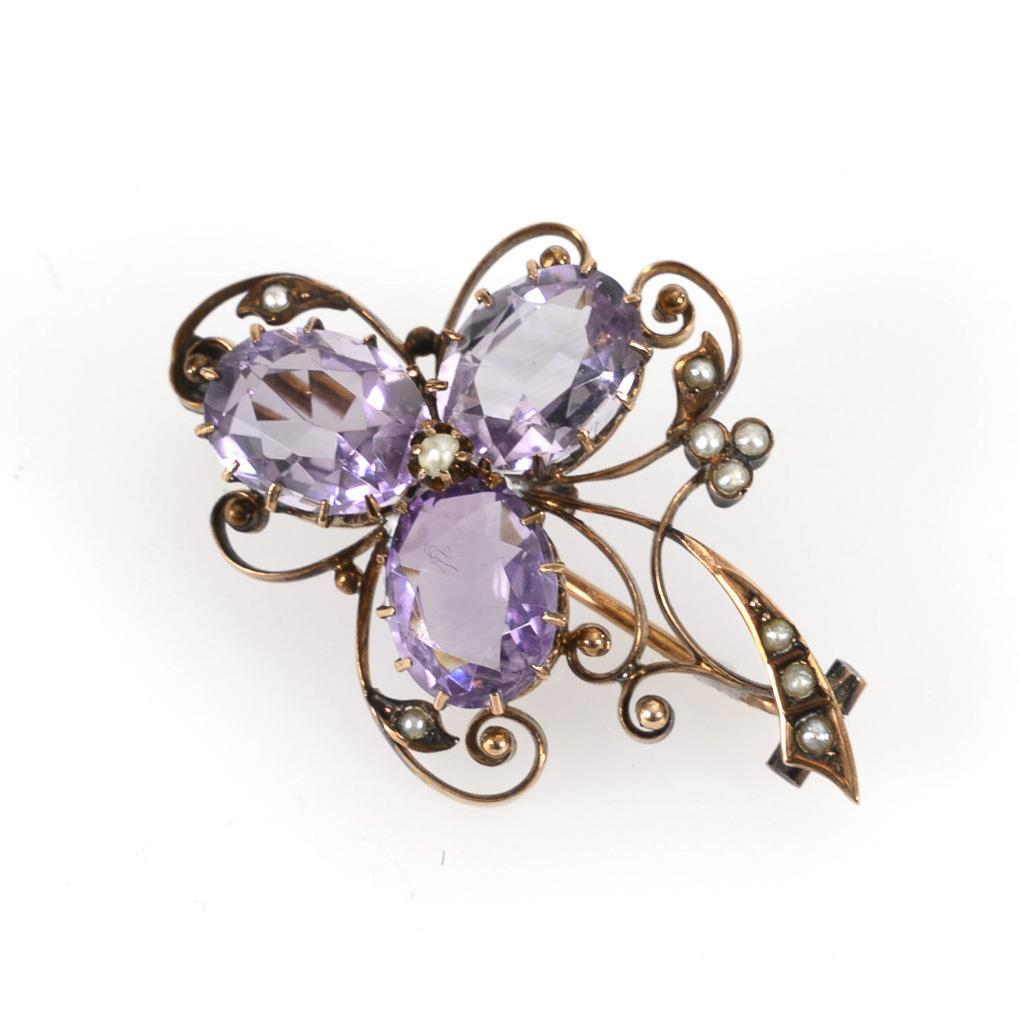 Brooch with amethysts and seed pearls, circa 1900.