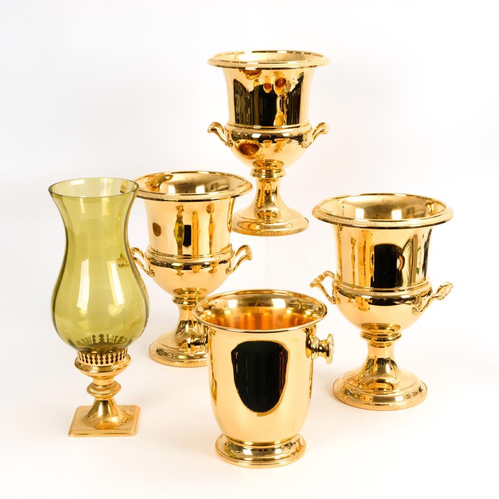 Metall vergoldet, grünes Glas.H Sektkühler maximal 34 cm, Windlicht für Kerzen bis Ø 4,7 cm.