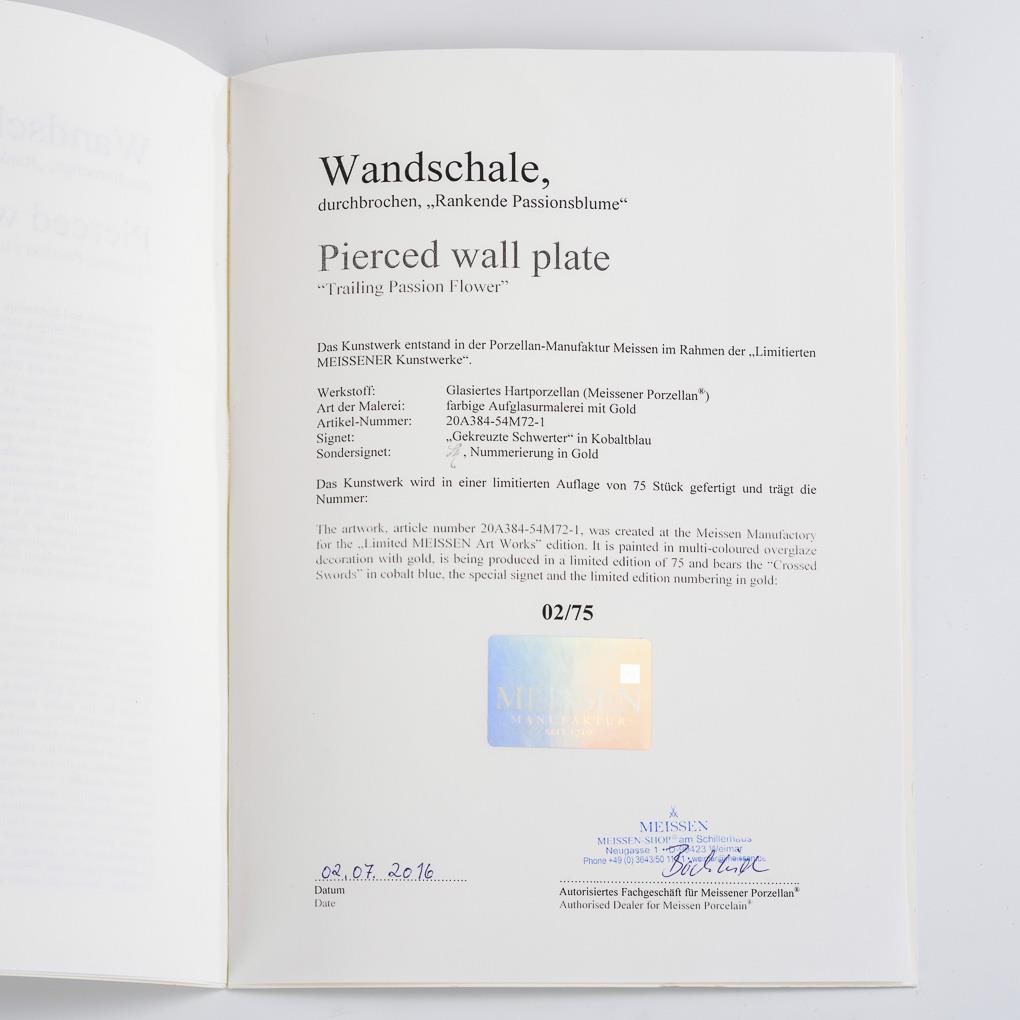 You are here:   Home Categories Porcelain Limitierte Wandschale Meissen "Rankende Passionsblume", Druchbruchrand. Mit Zertifikat