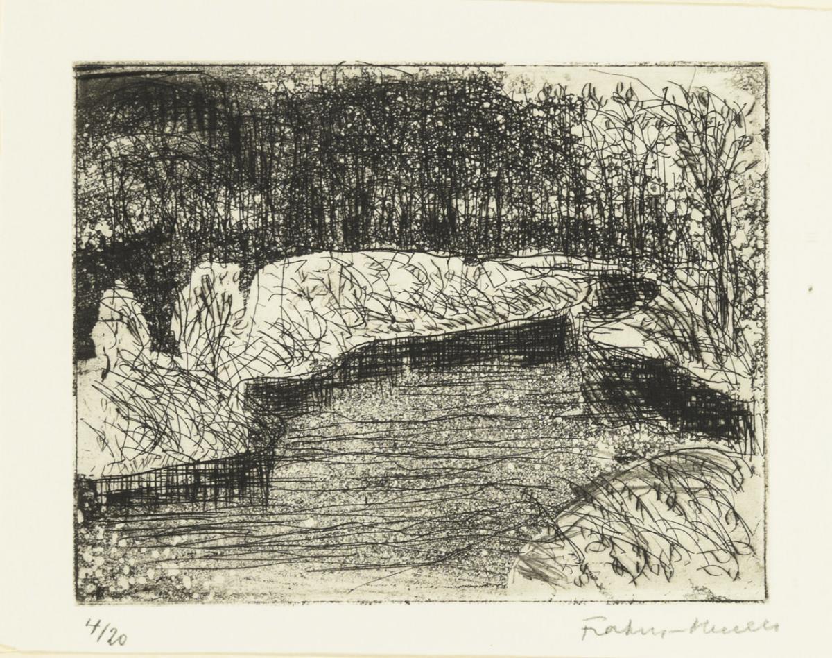 Print plate: 12 x 15.5 cm. Framed & behind glass : 44.5 x 32.5 cm.