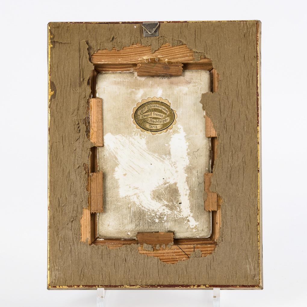 Polychrome painting over preprint. 15,4 x 10,2 cm, in gold-bronzed wooden frame (24,5 x 19,5 cm).