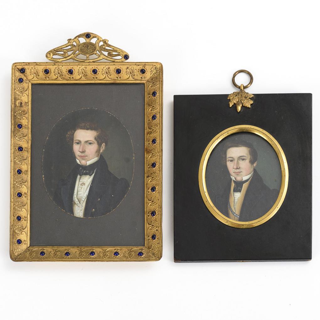 2 Biedermeier miniature portraits of young gentlemen.