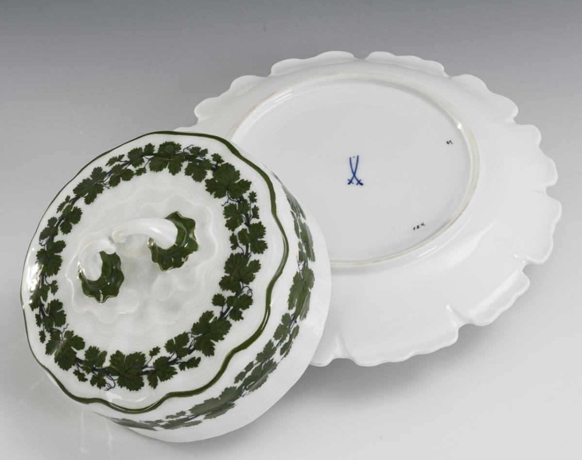 Butter dish with vine leaves decor. Meissen.