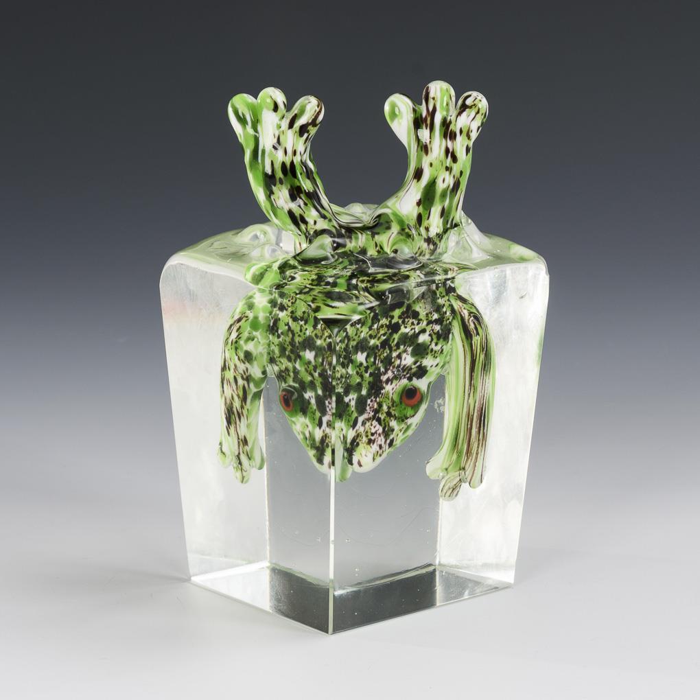 Sculpture of a frog jumping into the pond. Minimal edge bumps.
