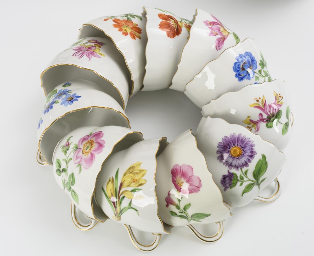 32 parts. Shape "New Cutout". With the floral decoration "Flower 1". 11 cups (h 6.5 cm), 11 saucers (Ø 14.5 cm) and 10 cake plates (Ø 18 cm).