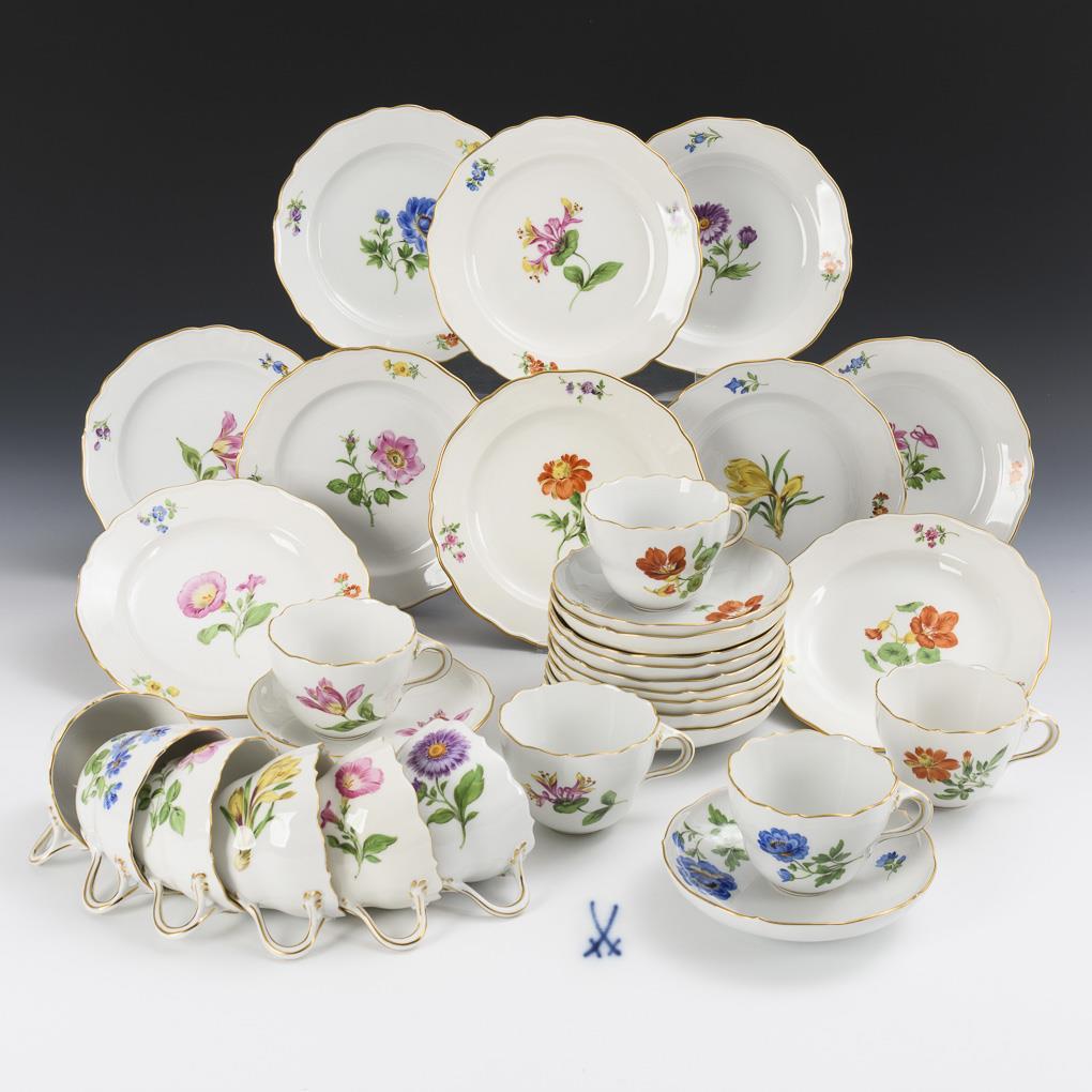 10 place settings and 1 cup with saucer. Meissen.