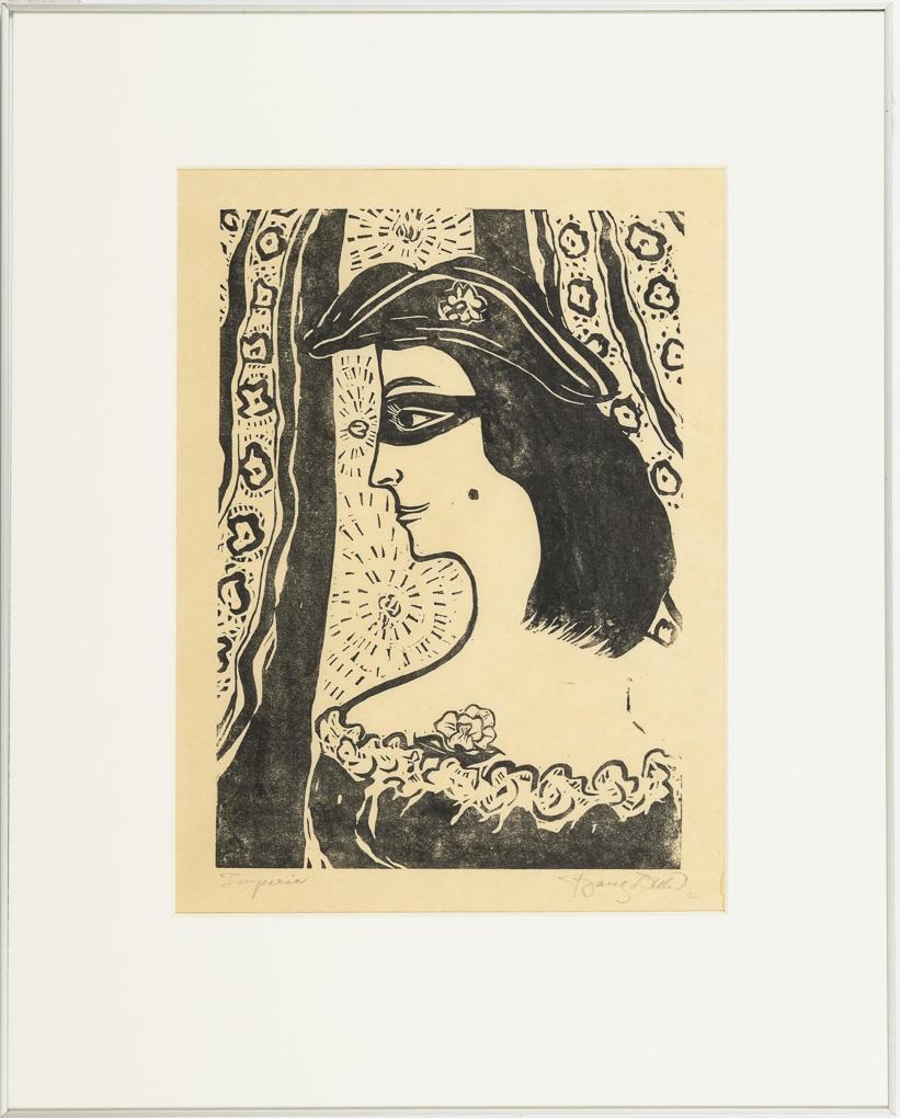 Woodcut. Pencil signature.