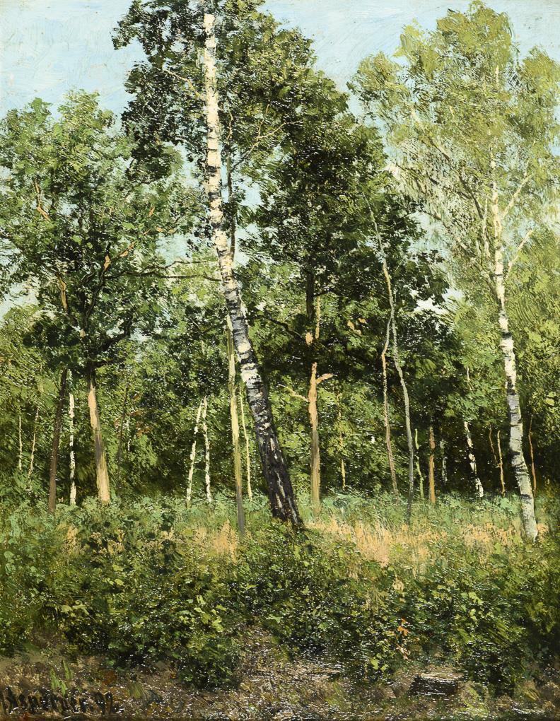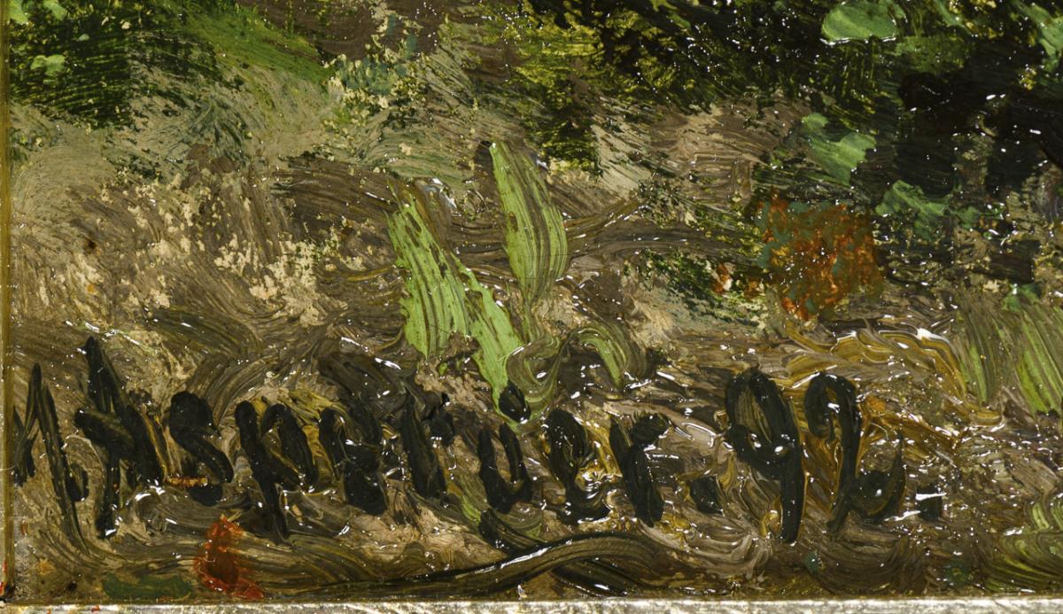 Oil/painted cardboard. Signed lower left. (18)92.