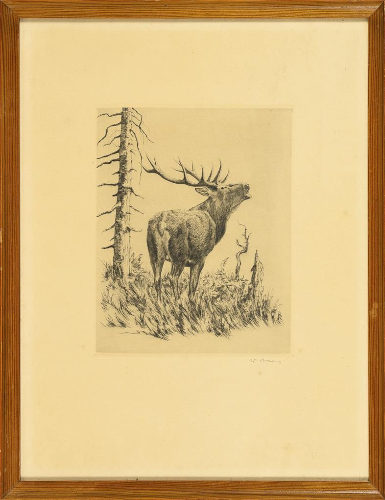 Indistinctly signed: Roaring stag
